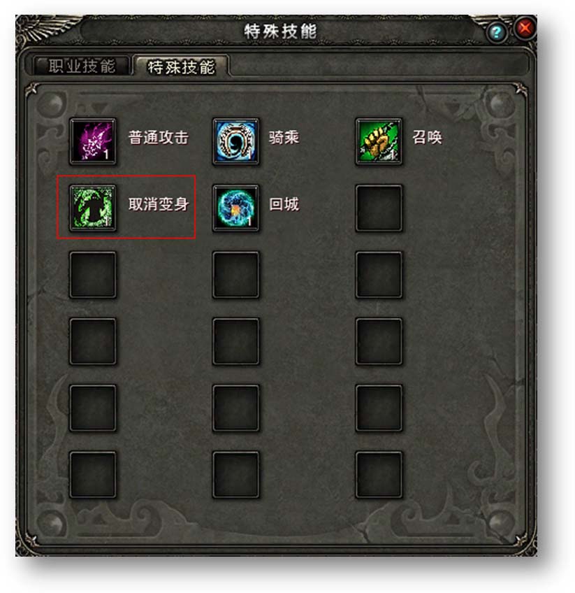 点击快捷键“S”打开技能界面,玩家也可以通过特殊技能中【取消变身】按钮来关闭变身效果。